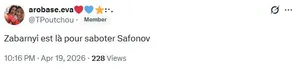@TPoutchou: «Забарный пришел, чтобы сорвать планы Сафонова».