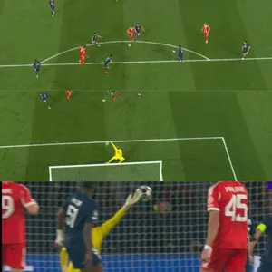 Второй гол: На 41-й минуте Майкл Олисе при счете 2:1 в пользу «ПСЖ» нанес сильный удар почти по центру ворот. Виноваты были опорники и защитники «ПСЖ», позволившие сопернику спокойно протащить мяч почти к линии штрафной.