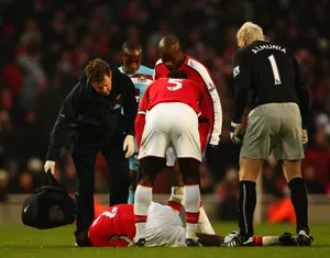 Болельщики «Арсенала» со стажем прекрасно знают, о каком подкате речь. Май 2006-го, «канониры» громят на выезде «Сандерленд» — 3:0. Идет 91-я минута, игроки и судьи уже собираются в раздевалку. Диаби перехватывает корявый пас защитника «черных котов» Дэна Смита, и тот — от злобы, перемешанной с бессилием, — бросается французу в ноги. Абу вопит от боли, между тем как главный арбитр достает из кармана лишь желтую карточку. Прыгать в кость — норма для АПЛ тех лет, но даже по ее меркам травма Диаби выглядит жутко.