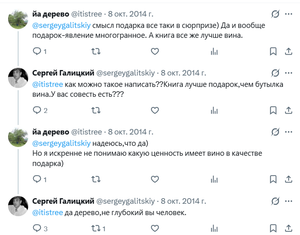 И даже поспорил с пользователем, который заявил, что лучший подарок — не вино, а книга.