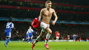 Первым в розовых бутсах сверкнул Никлас Бендтнер. Вся Англия стояла на ушах!