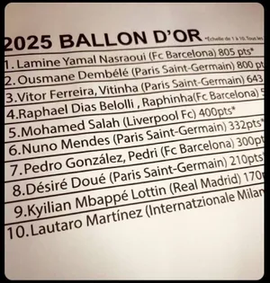 Ламин Ямаль или Усман Дембеле? Их осталось только двое. Места с 10-го по третье распределились следующим образом: