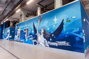 Аlexey Аtyuk и Дмитрий Oseck создали произведение из элементов граффити, советского леттеринга и ретрофото. В центре композиции богиня Ника — символ победы и славы. Благодаря абстрактным формам, формирующим полотно, арт-объект пропитан энергией движения, космической силой и символизирует торжество спортивного духа, стремление к победам и высшим идеалам.