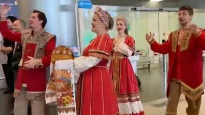Боливийские футболисты были встречены в России с хлебом и солью и сразу пустились в пляс