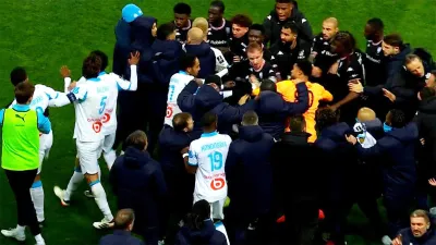 Игроки, находившиеся в том числе и на скамейке запасных, устроили стычку «стенка на стенку». В итоге главный арбитр встречи наказал желтыми карточками находившихся в числе запасных вратаря «Марселя» Херонимо Рульи и защитник «Ниццы» Али Абди.