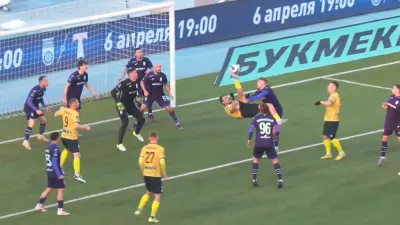 Видео: футболист «Волги» забил гол в падении через себя в ворота «Уфы»