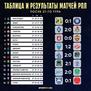 Сегодня, 27 апреля, завершился 27-й тур российской Премьер-Лиги.