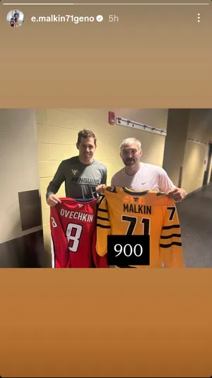 Произошло эпохальное событие в матче против принципиального для «столичных» соперника — «Питтсбург Пингвинз». Несмотря на это, Овечкину аплодировал весь стадион. Да и с некогда принципиальными соперниками Сидни Кросби и Евгением Малкиным русский снайпер уже давно в теплых приятельских отношениях. С российским форвардом «Питтсбурга» Александр после матча обменялся игровыми свитерами — две легенды!