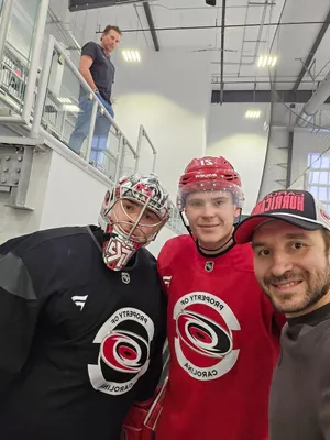 На тренировку к «Каролине» заглянул олимпийский чемпион 2018 года и экс-игрок клубов КХЛ Андрей Зубарев.