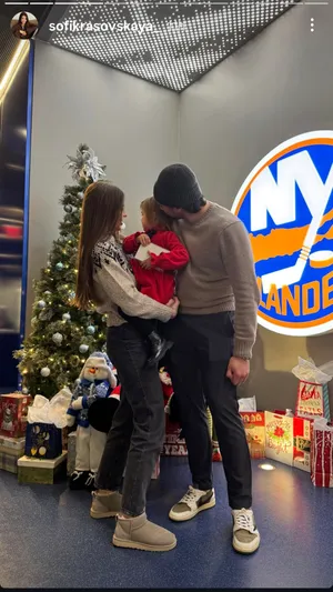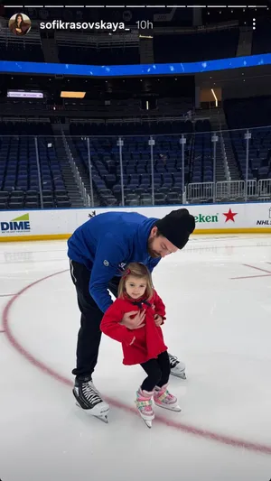 А на льду во время катания компанию малышке Оливии составил Илья Сорокин, голкипер «Айлендерс» часто нянчится с дочерью Александра.