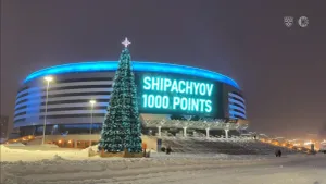 Отметили 1000-е очко Шипачева, может быть, не с таким размахом, как рекорд Гретцки, который побил Овечкин. Однако в каждой трансляции рядом со счетом был счетчик очков, как и на «Минск-Арене». За Вадимом из города в город следовал президент КХЛ Алексей Морозов — прямо как Гэри Беттмэн и Уэйн Гретцки, ездившие по пятам Овечкина. А когда Вадим сделал ЭТО, на фасаде минской арены высветилось соответствующее сообщение.