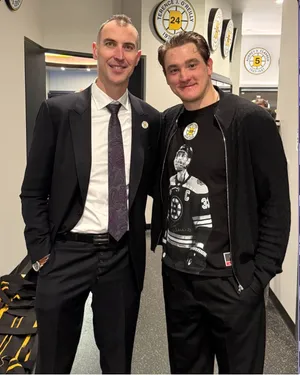 В Бостоне провели торжественную церемонию вывода из обращения 33-го номера словацкого хоккеиста Здено Хары, который был капитаном команды на протяжении 14 сезонов, а в 2022 году завершил карьеру. Снимок с легендой «Бостона» сделал российский защитник команды Никита Задоров. «Большой Зи, и Зи еще больше», — подписали фотографию в соцсетях «Брюинз».