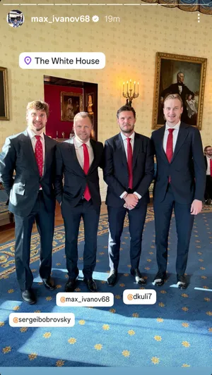 У игроков «Флориды» на минувшей неделе состоялось важное событие — команда всем составом была на приеме президента США Дональда Трампа в Белом Доме, посвященном второму подряд чемпионству «Пантерз». Присутствовали на встрече и россияне — голкиперы «Пантерз» Сергей Бобровкий и Даниил Тарасов, защитник Дмитрий Куликов и тренер по индивидуальным навыкам Максим Иванов. Бобровский на этом приеме удостоился отдельной похвалы со стороны Трампа:
