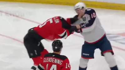 В битве с «Дэвилз» русский богатырь имел теоретическую возможность набрать несколько очков и улучшить свою статистику. Но вместо этого россиянин был вынужден пускать в ход кулаки и вставать на защиту себя и партнеров. Первое столкновение с участием 10-го номера «Блю Джекетс» произошло на старте второго периода. Защитники «Нью-Джерси» после свистка достаточно жестко обошлись с Адамом Фантилли, который дежурил на чужом пятаке. Само собой, за канадца тут же вступились одноклубники. И если Шон Монахан просто держал своего оппонента и не вступал с ним в прямую конфронтацию, то в случае Воронкова применением мягкой силы не обошлось. Русскому бойцу в соперники достался Бренден Диллон, проводивший 1000-й матч в карьере. Защитник хозяев не сумел оказать никакого сопротивления бывшему форварду «Ак Барса» — Дмитрий отправил противника в нокдаун всего за 2 удара. В итоге Диллон смог покинуть лед только с посторонней помощью. Неутешительный финал для парня, проводившего свой юбилейный матч в лиге.