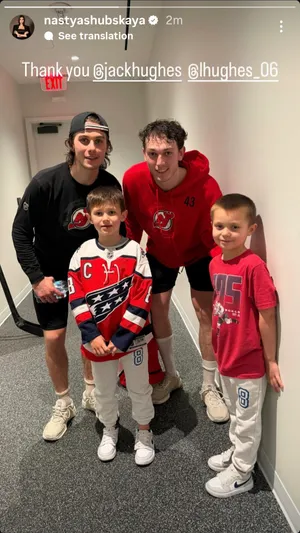 Сыновья Александра Сергей и Илья продолжают собирать коллекцию фотографий с разными звездами НХЛ. На этот раз братья Овечкины сфотографировались с братьями Джеком и Люком Хьюзами, играющими в «Нью-Джерси».