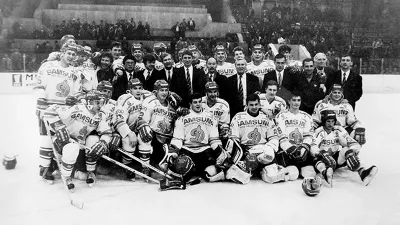 «Ну вот при том, что это были крепкие ребята, они легли на нашем атлетизме. Было такое адское упражнение, еще с юрзиновских времен. Детали долго описывать, но по сути это танец со штангой. «Так, бревнышко подняли и хоп-хоп-хоп-хоп!» Канадцы могут выполнять правильные упражнения жим лежа, допустим, и с хорошими весами. А тут у них просто позвоночник осыпался. Смит с Халсом потом на кросс вышли в сандалях и пешком шли. Тут нечему удивляться, с точки зрения канадцев в отечественной атлетической подготовке все упражнения были неправильными. Да что там, уже много лет прошло, и Алексей Яшин подошел к Юрзинову: «Владимир Владимирович, а помните упражнение грудь-толчок?». — «Помню». — «Так вот, я его никогда не делал, мимо проходил». — «И правильно!», — вспоминал Карповцев.