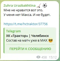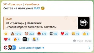 «Состав на матч уже в MAX😎», — написал «Трактор» в своем официальном Telegram-канале, где у них более 114 тыс. подписчиков.