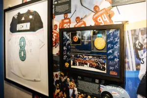 Фотографии, факелы, оригинальные медали и предметы экипировки легенд — президент «Норникеля», председатель попечительского совета Ночной хоккейной лиги Владимир Потанин собрал в личной коллекции всё, что связано с золотой историей отечественного хоккея. Всего на выставке представлено более 60 редчайших артефактов.