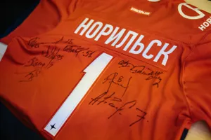 Почетным гостям провели экскурсию, а в конце легенды подарили Музею Норильска игровой свитер с автографами.