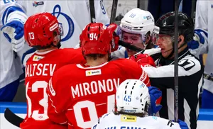 Лидера «Спартака» били в лицо, судья корчился от боли, великого Ларионова не спасли даже подсказки. Фото матча КХЛ