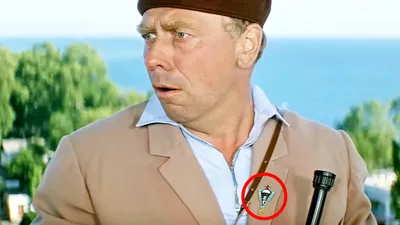 На первый взгляд, значок парашютиста просто аксессуар, но у Гайдая редко встречаются случайности. В контексте персонажа он работает как характеристика.