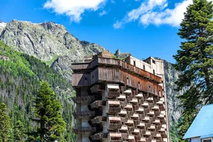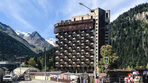 В Карачаево-Черкесии, в сердце курортного Домбая, в декабре 2024 года начали сносить 18-этажную гостиницу «Аманауз» — один из самых узнаваемых символов советского модернизма. Здание с балконами, похожими на горные утесы, много лет считалось визитной карточкой курорта, хотя в его номерах так и не поселился ни один турист.
