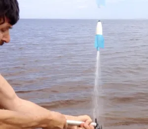 Водяная ракета представляла собой пластиковый корпус, похожий на настоящую космическую ракету. Внутрь нужно было налить воду, после чего игрушку закрепляли на специальной стартовой площадке. Далее с помощью обычного велосипедного насоса в нее закачивали воздух. Когда давление достигало нужного уровня, происходил запуск. В момент старта вода под давлением резко выбрасывалась наружу, создавая реактивную тягу, благодаря которой ракета стремительно поднималась вверх.