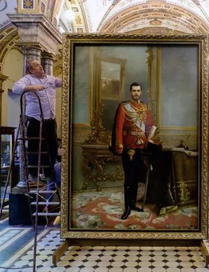 История «двойной» картины началась еще в 1896 году. Знаменитый художник Илья Галкин, который неоднократно изображал царскую семью, получил заказ на парадный портрет последнего русского императора в честь коронации монарха.