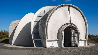 Крематорий был построен в Киеве в 1975 году. Автором архитектурного проекта стал Авраам Милецкий — один из самых заметных архитекторов позднесоветского модернизма. Комплекс выполнен в стиле брутализма с элементами органической архитектуры: массивные бетонные формы здесь не подавляют, а словно «врастают» в рельеф Байкового кладбища, повторяя изгибы холмов. Это было принципиально новое прочтение темы смерти — не торжественно-помпезное и не мрачное, а философское и почти космическое.