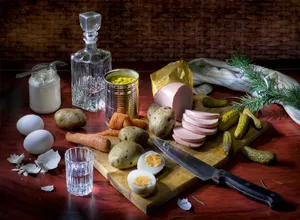 К концу 1970-х прилавки становились скромнее: исчезали маслины, пикули, дорогие соусы. Домашний оливье все чаще делали с докторской колбасой, а не с птицей.