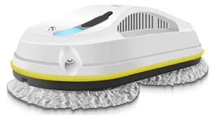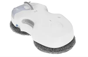 Недорогое устройство имеет достаточную мощность для эффективного удаления грязи и пыли. Модель питается от сети, оснащена аварийной батареей на 500 мА*ч и резервуаром для воды объемом 50 мл. Технология ультразвукового распыления обеспечивает равномерное смачивание поверхности. Робот ориентируется в пространстве и определяет препятствия с помощью гироскопа. Для управления предусмотрен пульт ДУ, а для защиты от падения — страховочный тросик. Девайс выполнен в облегченном пластиковом корпусе и весит 1,15 кг. В комплект входит все необходимое для немедленного использования: зарядный блок, пульт управления, флакон для заливки моющего средства, 4 мопа и запас чистящих салфеток, а также чехол для хранения.