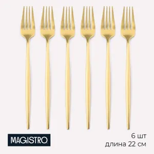 Цвет золота придает вилкам элегантный вид, который будет гармонично сочетаться с любым интерьером. В комплекте 6 приборов длиной 22 сантиметра.