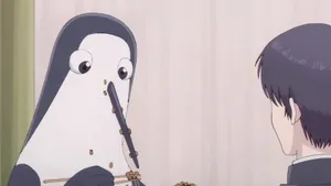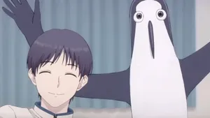 Большую часть эфирного времени наш странный герой занят тем, что ест, выходит кричать на реку и попеременно пугает и вызывает чувство испанского стыда то у героев аниме, то у зрителя. Это чудо природы появилось благодаря простому деду Максиму из России, который смог вырастить из обычной птицы настоящего человека и даже привил своему пернатому другу любовь к балету. Надо ли говорить насколько комично выглядит вся эта история? Но она не только про смех.