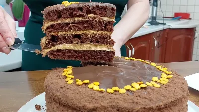 Этот торт — как раз такой случай. Шоколадный, высокий, весом больше двух килограммов, с мягкими бисквитными коржами и нежным кремом. И главное — без духовки. Все готовится на обычной сковороде, а активное время займет всего около получаса.