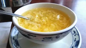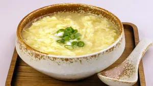 - В небольшой миске взбейте яйца вилкой или венчиком. Создайте легкое движение в супе ложкой так, чтобы в центре образовалась воронка, и тонкой струйкой влейте взбитые яйца в кипящий бульон. Яйцо сразу свернется в тонкие белковые спирали, похожие на кудряшки.