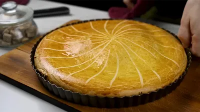Когда пирог остынет, дать ему «созреть» хотя бы сутки — на второй или третий день вкус становится насыщеннее, а начинка лучше пропитывает тесто.