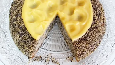 Главная особенность этого торта — маковый бисквит на воде. Без яиц, без молока и даже без долгой пропитки: достаточно всего часа в холодильнике, и десерт готов.