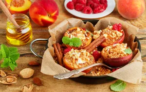 - Полейте нектарины соком одного апельсина и поставьте в предварительно разогретую до 180°C духовку на 20 минут.