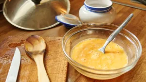 Ключевую роль играет и пропорция: в профессиональной практике используется соотношение яиц и молока примерно 1:1 по массе. Это не случайная рекомендация, а проверенный баланс, при котором белки яиц формируют стабильную, но мягкую структуру, а молоко добавляет влаги и делает текстуру более нежной. Если молока меньше, омлет получается плотным и «резиновым», если больше — может не держать форму и расслаиваться.