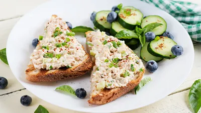 Этот вариант идеально подходит для тех, кто хочет получить максимум белка и минимум лишних калорий. Такой бутерброд содержит высококачественный белок из яйца и рыбы, полезные омега-3 жирные кислоты и клетчатку из цельнозернового хлеба.