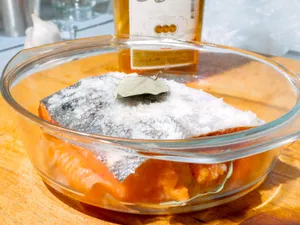 Домашний способ позволяет подобрать вкус под себя: от нежного слабосоленого до более насыщенного варианта. Рыба получается плотной, сочной и ароматной, без посторонних запахов и водянистой текстуры. А использовать ее можно для бутербродов, рулетов, салатов, канапе и других новогодних закусок.