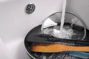 Если под рукой нет горчичного порошка, можно использовать раствор пищевой соды с горячей водой — он также помогает разъесть старый жир. Для усиления эффекта в раствор добавляют несколько капель нашатырного спирта. Но важно помнить: аммиак имеет резкий запах, поэтому замачивание стоит проводить в хорошо проветриваемом помещении и в перчатках.