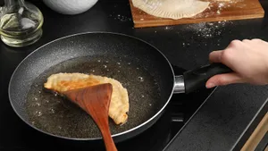 - Жарьте на среднем огне, чтобы корочка стала золотистой, а мясо успело приготовиться.