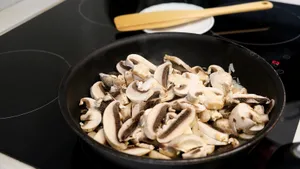Грибы содержат природные глутаматы, благодаря которым они дают яркий вкус даже без дополнительных усилителей. При обжарке на сильном огне они быстро теряют влагу и становятся более ароматными. Если добавить небольшое количество сливок или сметаны, получается плотная кремовая текстура — то, что нужно для устойчивой начинки. Она не вытекает из эклеров и хорошо держит форму.