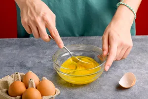 - Разбить яйцо в термостойкий стакан или кружку.