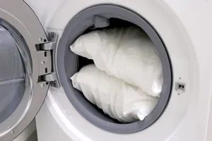 Первый шаг — всегда читать ярлык. Современные синтетические подушки можно стирать в машинке при 40–60 °C с жидким моющим средством. Пуховые и перьевые подушки стирают реже и деликатнее, лучше использовать режим «деликатная стирка» и мягкие моющие средства. Чтобы наполнитель не сбился, добавляют теннисные мячи в барабан. Стирать лучше по две подушки сразу — так барабан балансируется, и ткань не растягивается.