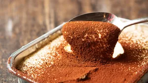 6. Готовый тирамису посыпьте какао с помощью мелкого ситечка.