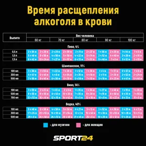 Таблица вывода алкоголя из организма