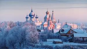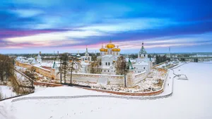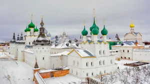 Ростов — один из самых кинематографичных городов России. Белокаменный Ростовский кремль видели даже те, кто там не был: именно здесь снималась сцена погони из легендарного фильма «Иван Васильевич меняет профессию». Зимой кремль выглядит особенно эффектно — белые стены, купола и снег создают почти сказочный кадр. А чтобы фотографии получились еще интереснее, можно здесь же взять напрокат исторические костюмы.