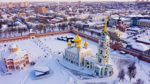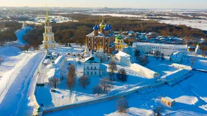 Начинать свое приключение по Рязани стоит с Рязанского кремля: это не крепость в привычном смысле, а целый ансамбль соборов и палат на высоком берегу реки. Зимой отсюда открываются красивые виды, а сам кремль выглядит очень атмосферно на снегу. А в окрестностях есть много заведений, где можно попробовать главную местную кулинарную достопримечательность — калинник.